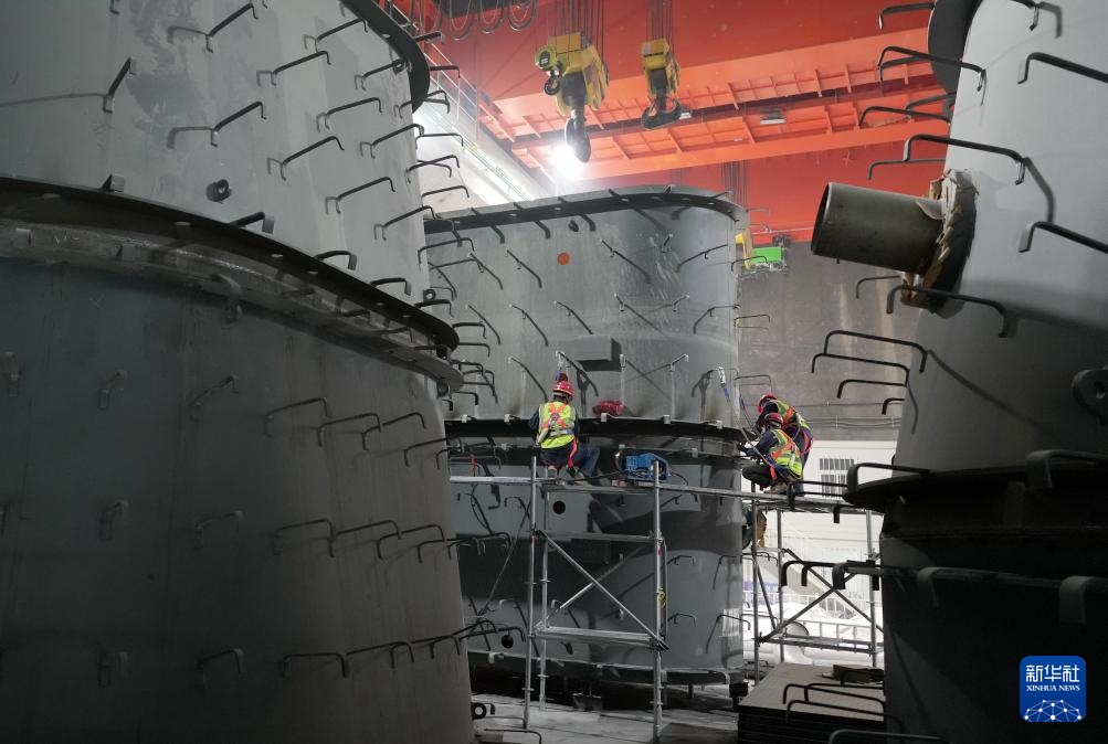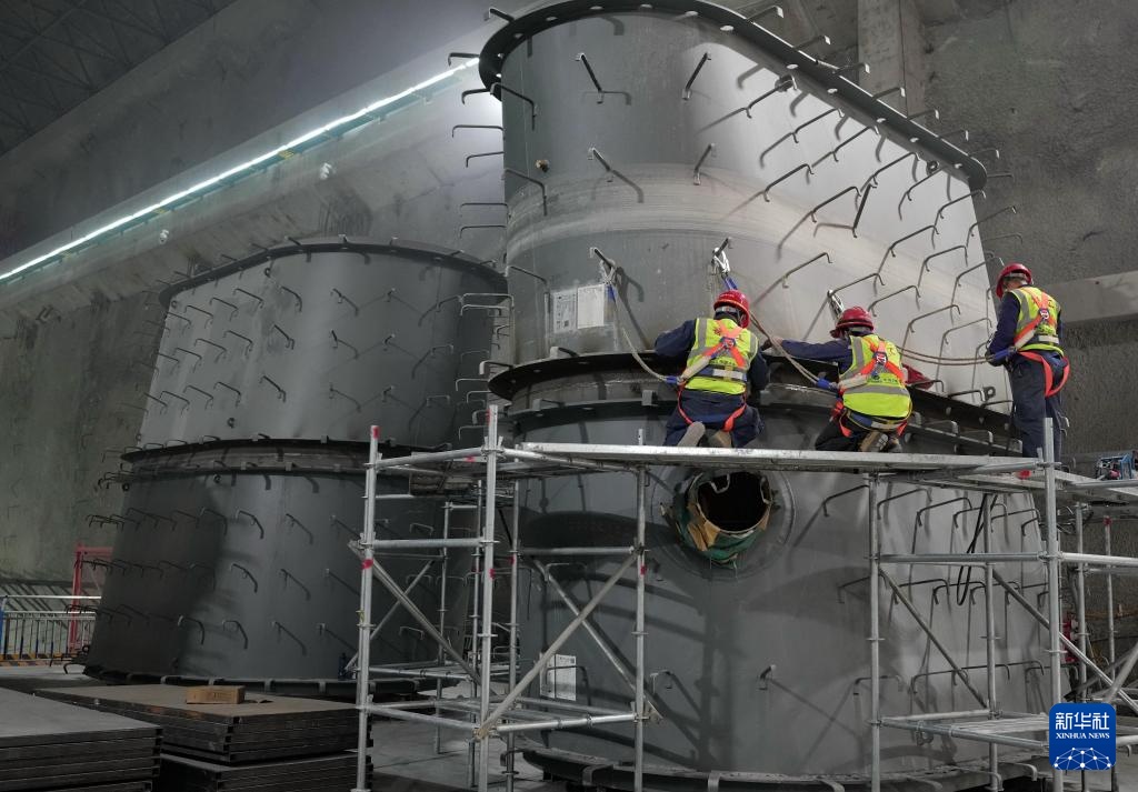 5月3日,工人在河北省秦皇岛市抚宁抽水蓄能电站地下厂房建设工地施工。