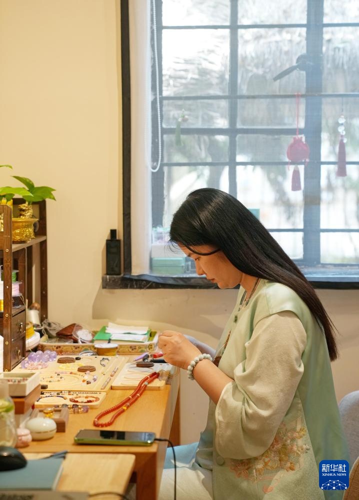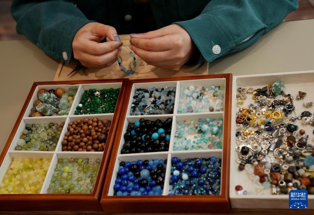 李雯在制作手串(4月18日摄)。