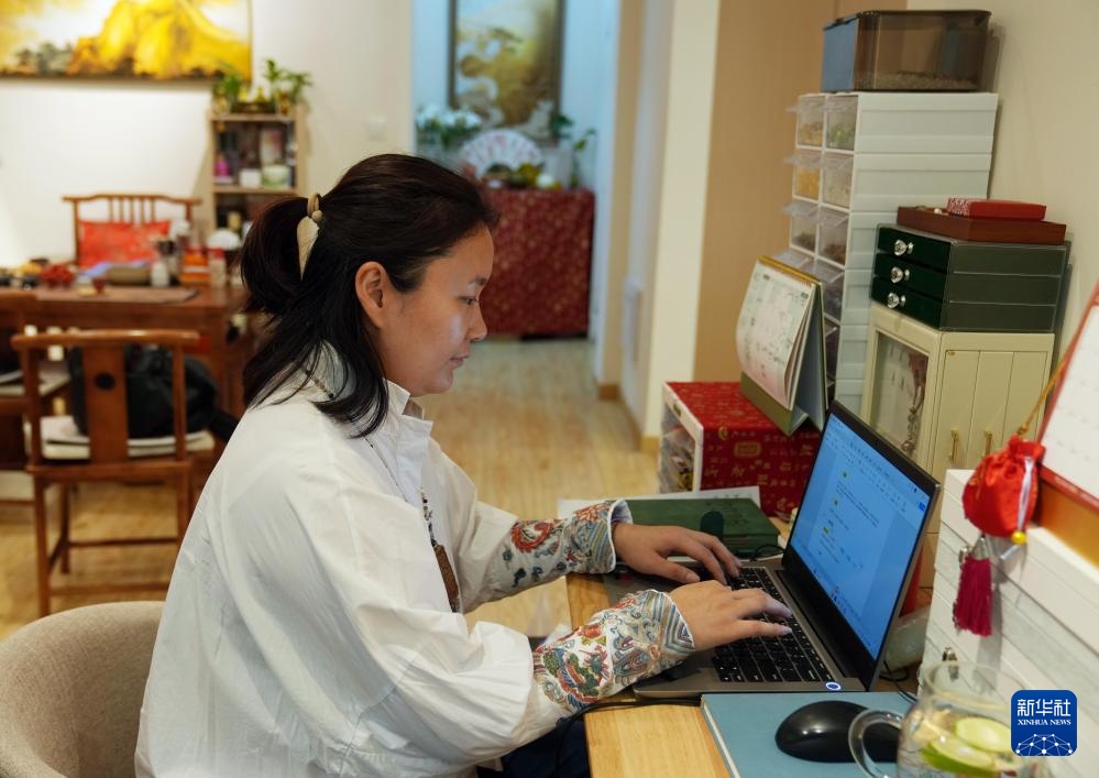 小店的手作课程团队成员为参加国潮市集准备展品(4月18日摄)。