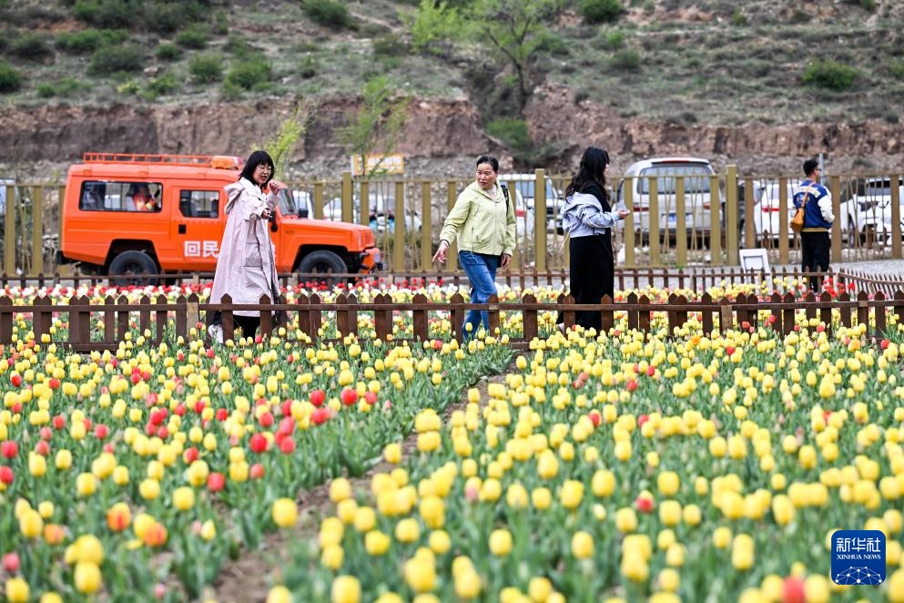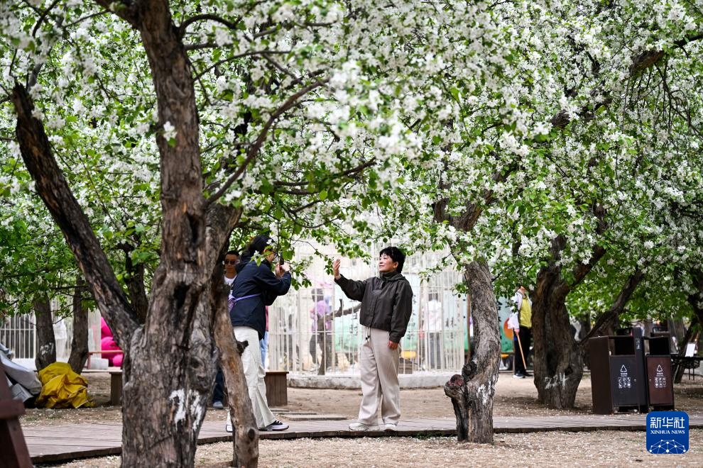 5月4日,游客在位于回民区东乌素图村的乌素图杏花谷景区游玩。