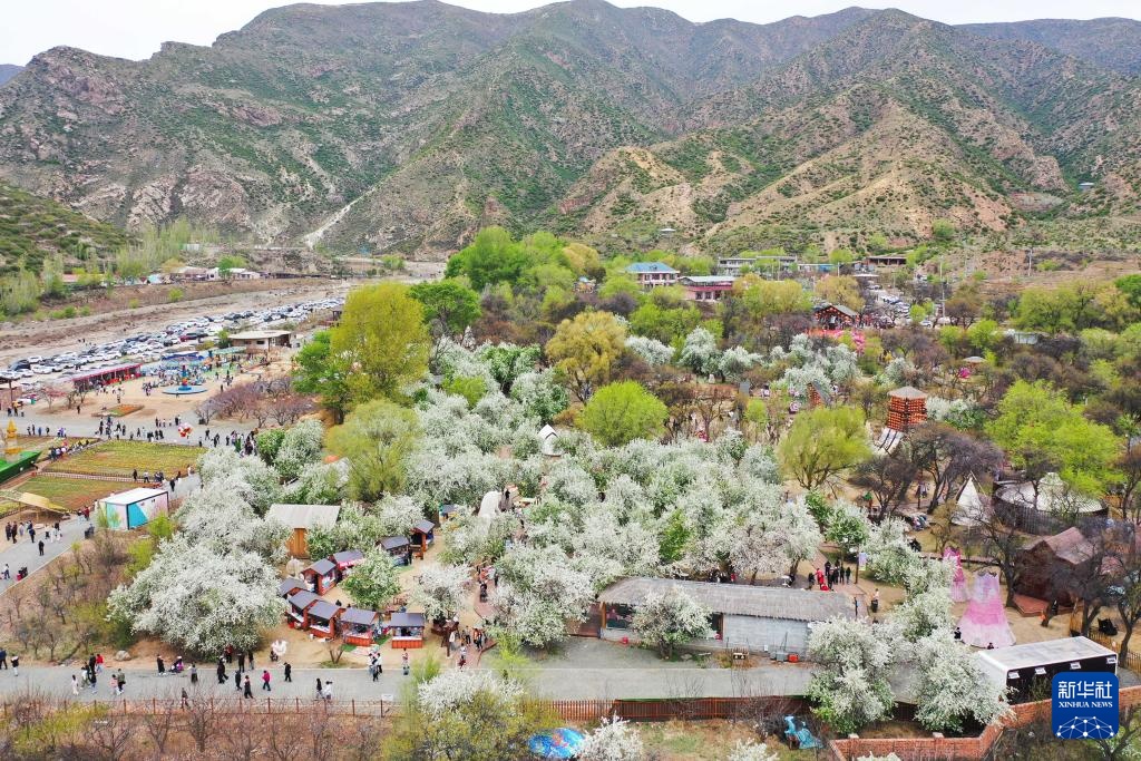 这是5月4日拍摄的位于回民区东乌素图村的乌素图杏花谷景区(无人机照片)。