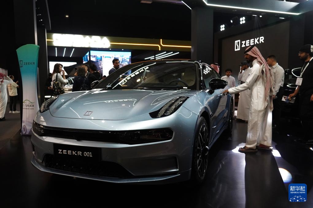 5月4日,在沙特阿拉伯利雅得举办的展会上,观众参观极氪汽车。