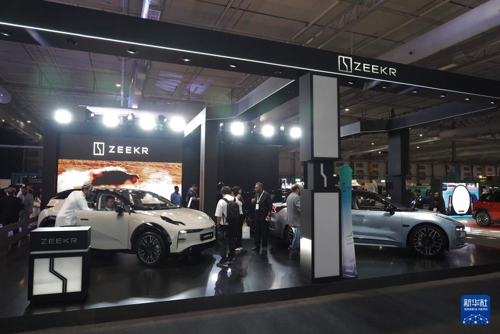 5月4日,在沙特阿拉伯利雅得举办的展会上,观众参观极氪汽车展区。