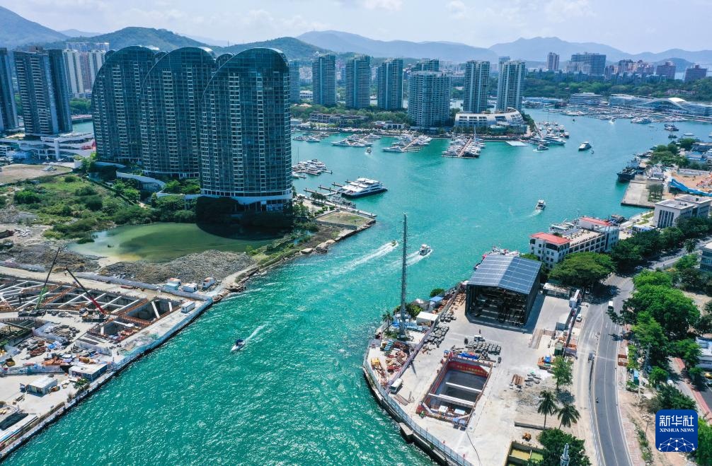这是5月5日拍摄的三亚河口通道工程项目现场(无人机照片)。