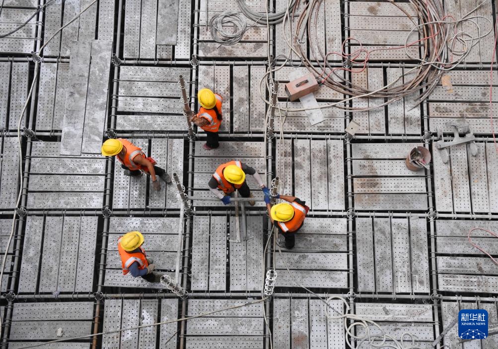 5月5日,工人在三亚河口通道工程项目现场施工。