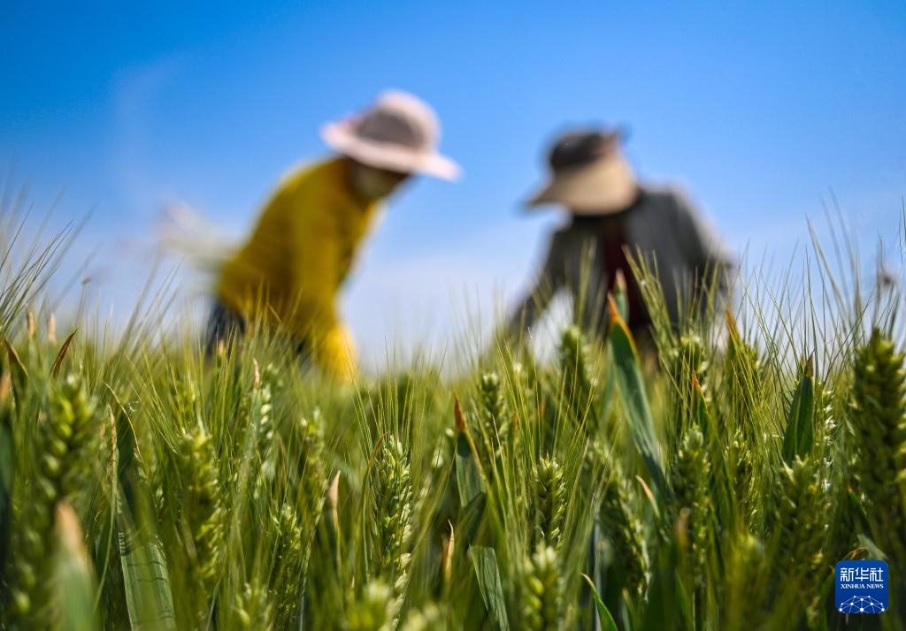 5月5日,在河南省商丘市夏邑县会亭镇郭楼村,村民在麦田内除杂。