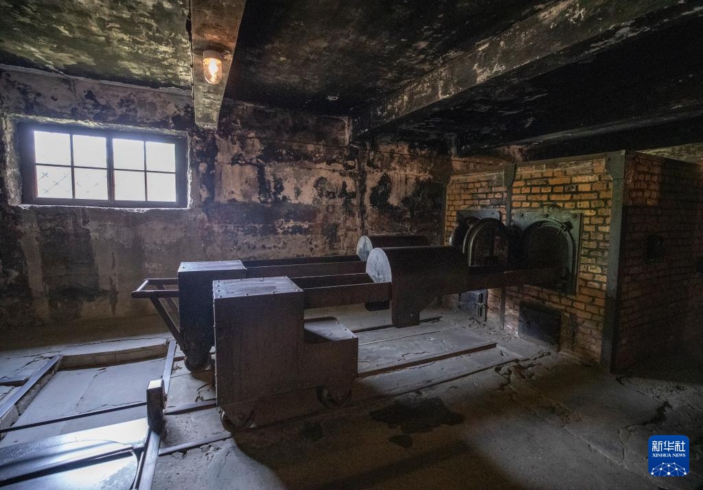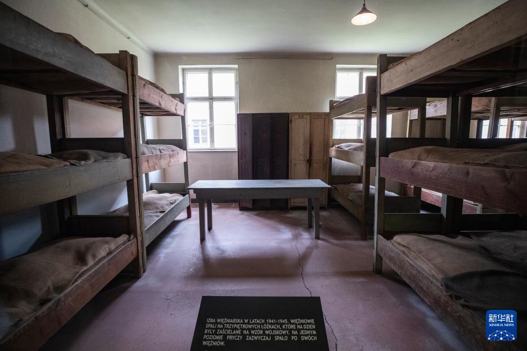 这是5月6日在波兰南部的奥斯维辛-比克瑙集中营旧址拍摄的内部景象。