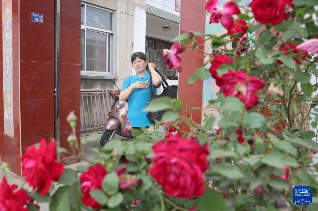 4月29日,王汝芳在海安市结束上门照护服务后,走出服务对象院子的大门。