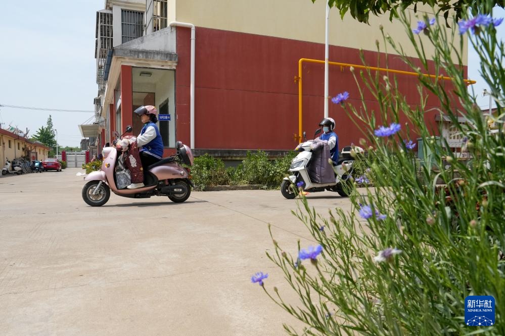 4月29日,王汝芳(左)和崔恒霞骑车前往照护对象家。