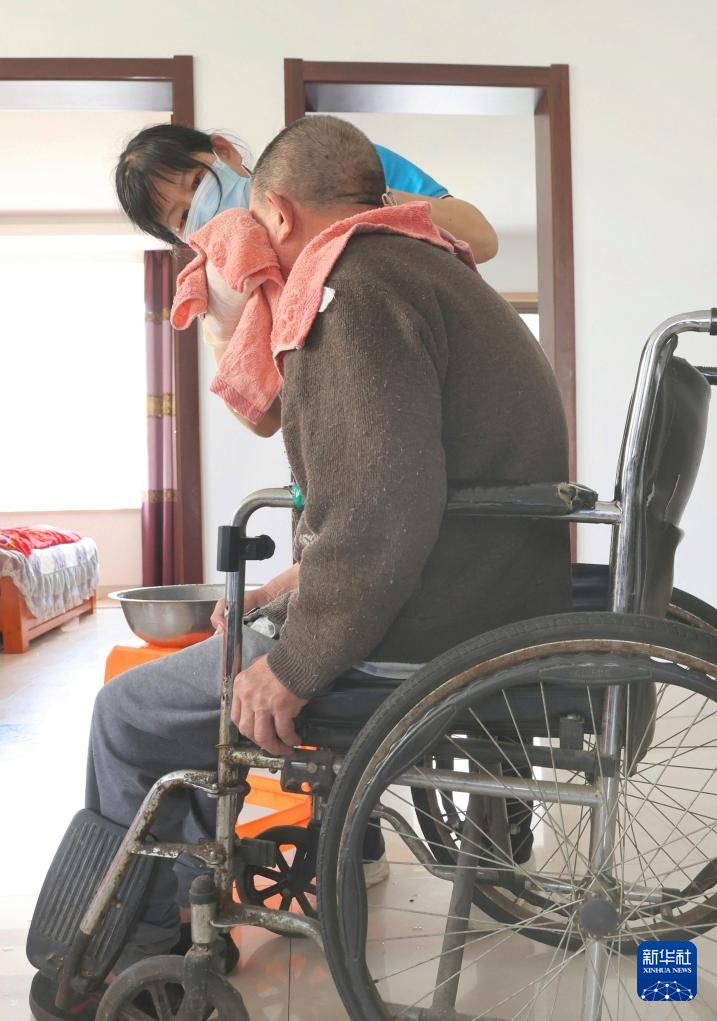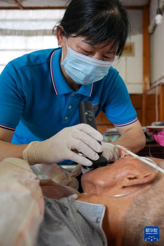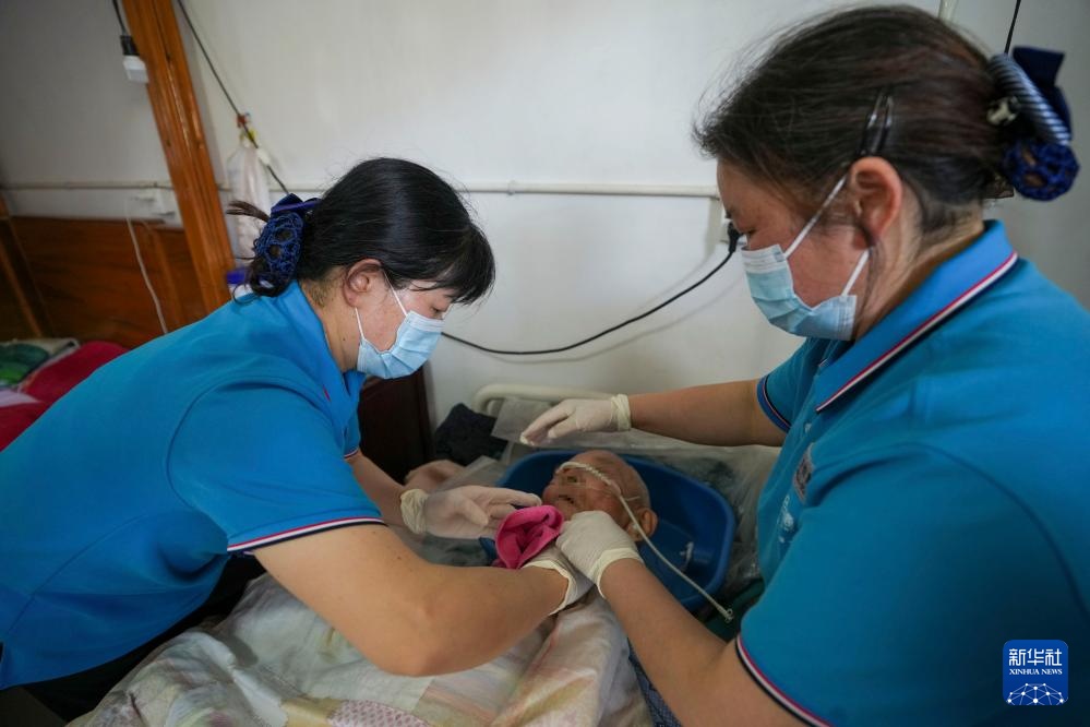 “爷爷好,我们给您测下血压。”长期照护师王汝芳和搭档崔恒霞来到江苏省海安市的失能老人陈爷爷家。测量血压、脉搏、呼吸,剃胡须、洗头、擦拭身体、换床单……通过一系列熟练、专业的操作,她们完成了陈爷爷的日常检查与护理,陈爷爷的老伴丁奶奶笑着为她们“点赞”。