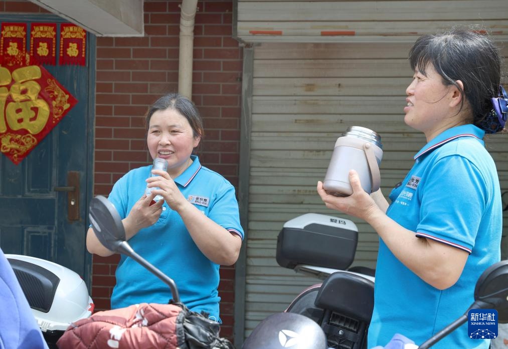 中午,王汝芳和崔恒霞已完成三次上门照护服务,她们在小区里吃起了午餐,进行短暂休息。王汝芳说:“我们每天工作体力消耗很大,虽然累,但服务对象和家属对我们很认可,期待着我们上门,我们心里很有获得感。”