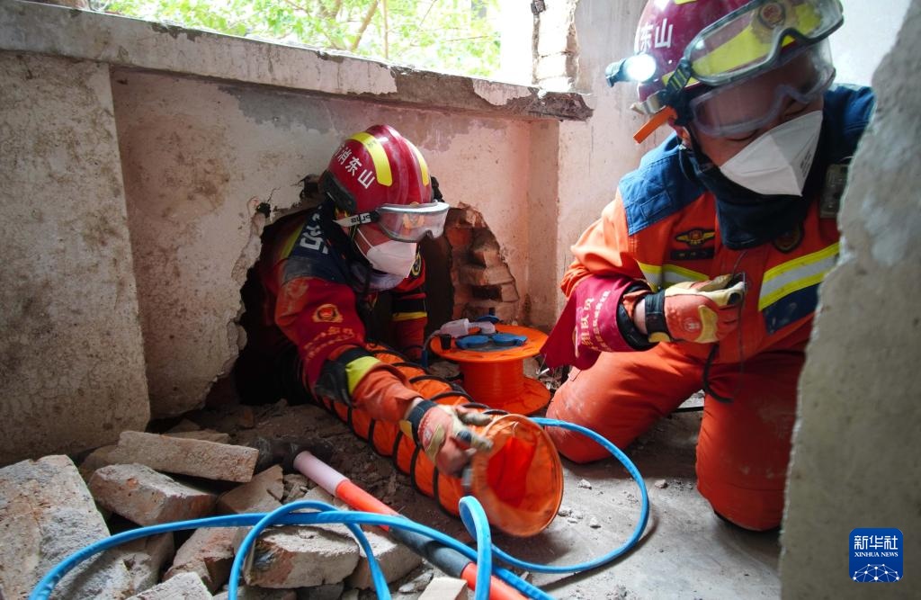 5月8日,地震救援队员在进行狭小空间破拆救援演练。