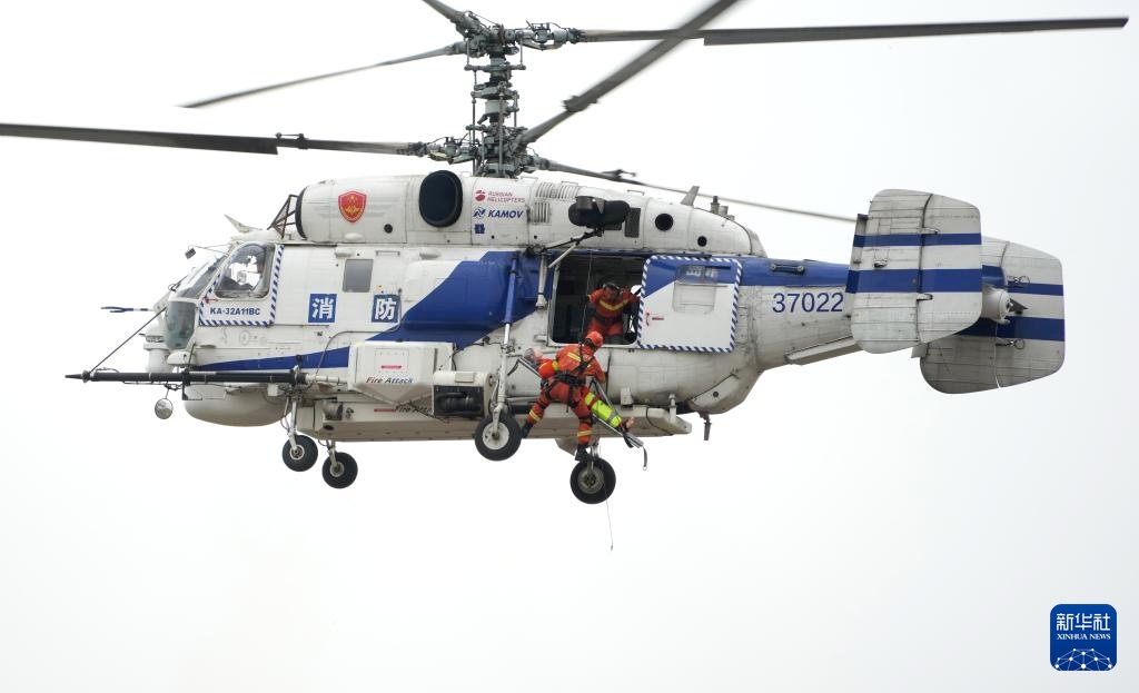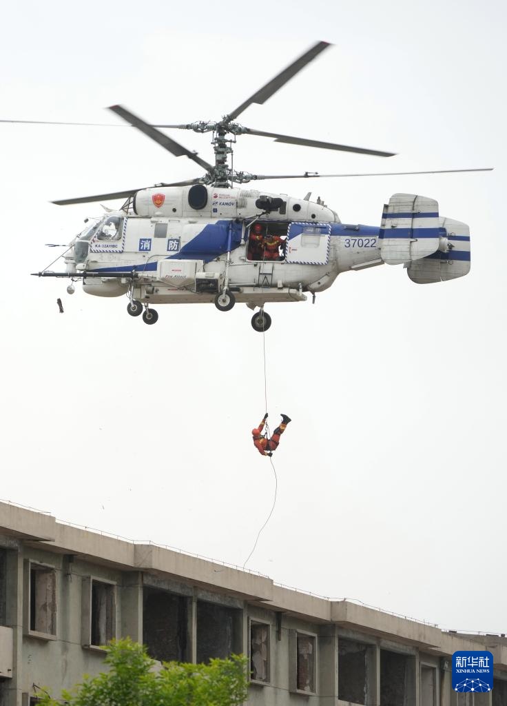 5月8日,地震救援队员在进行直升机救援演练。