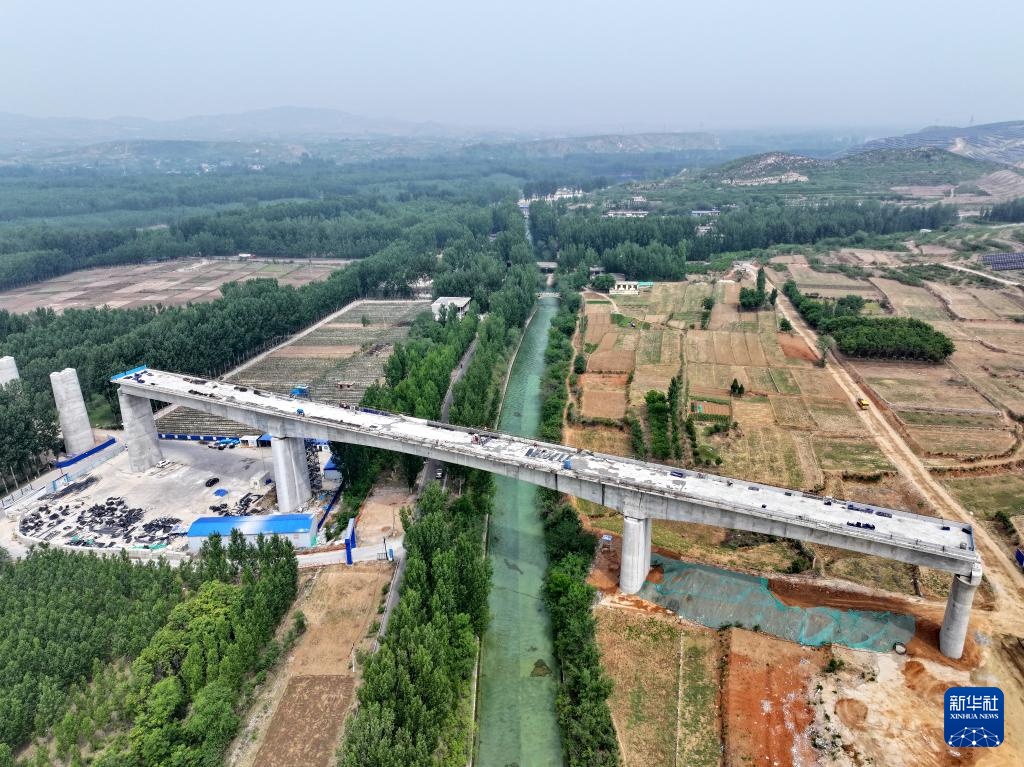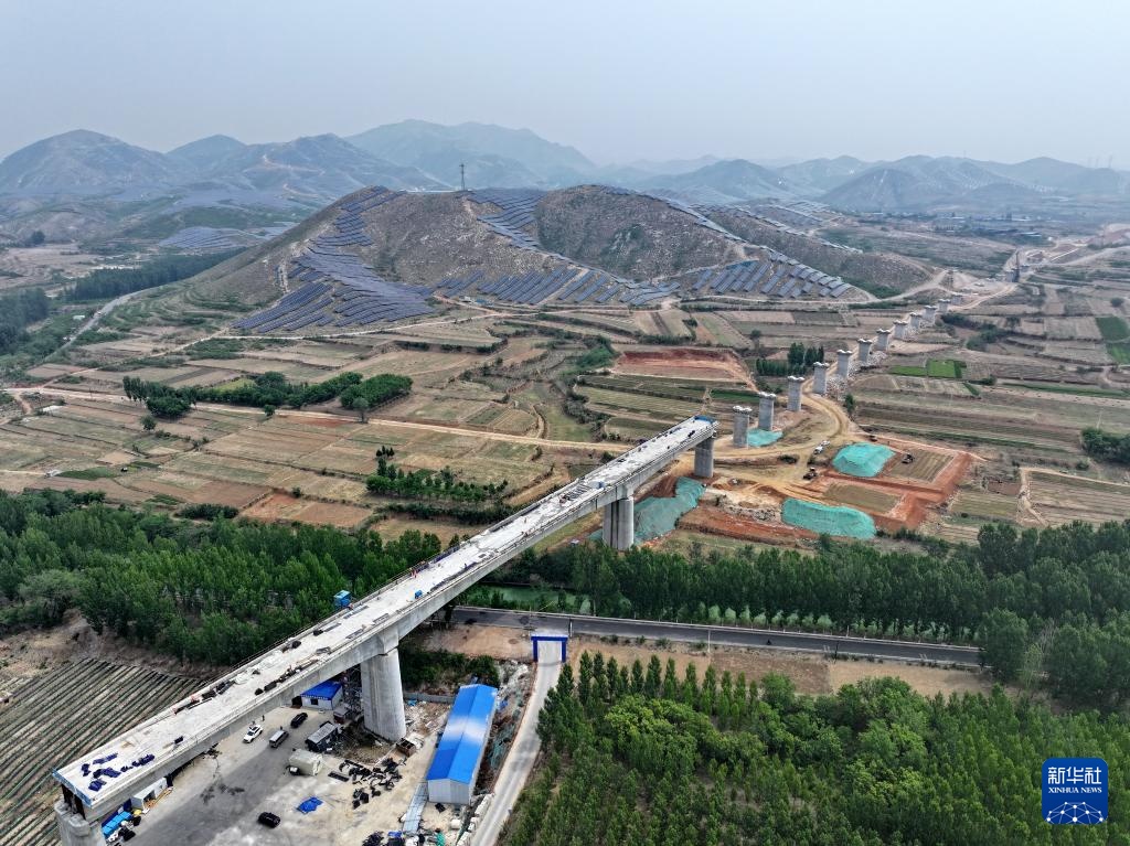 这是雄忻高铁河北段站前3标段建设现场(5月8日摄,无人机照片)。