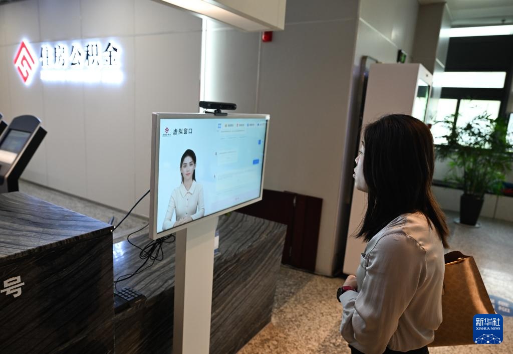 5月7日,在常州市住房公积金管理中心服务大厅,AI数字经办人“小金”为市民提供服务。