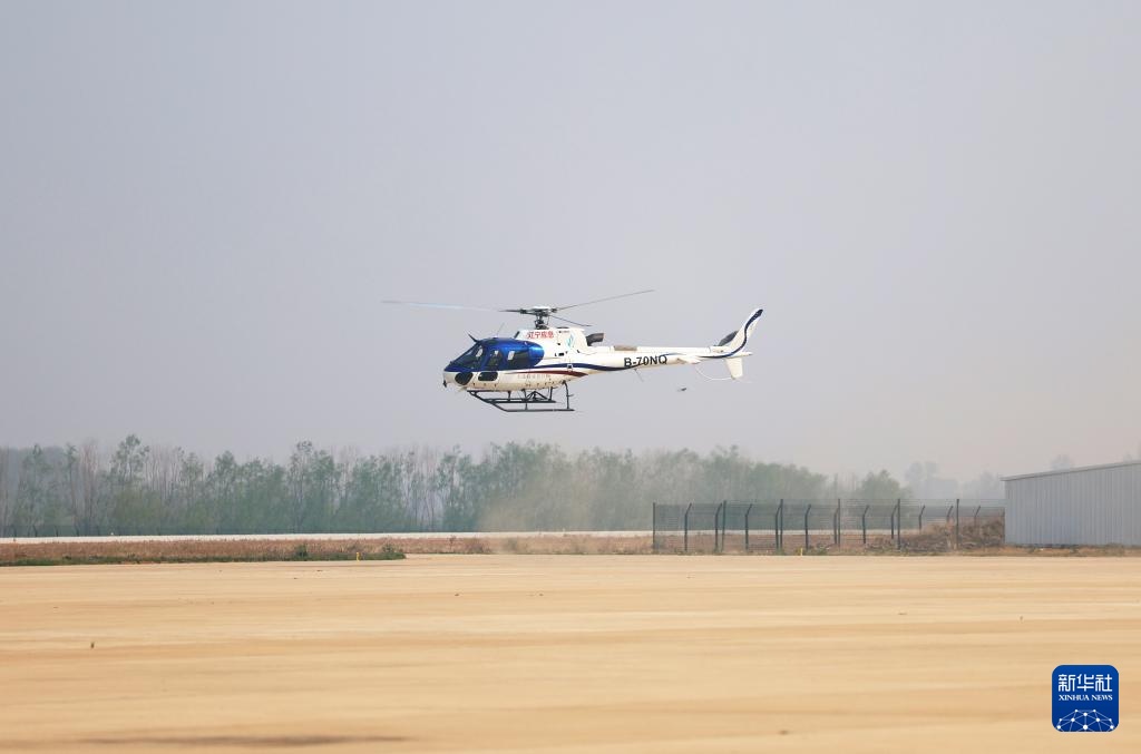4月26日,在辽宁省沈阳市法库县,一架直升机从沈阳法库通用航空产业基地起飞,准备进行护林作业。