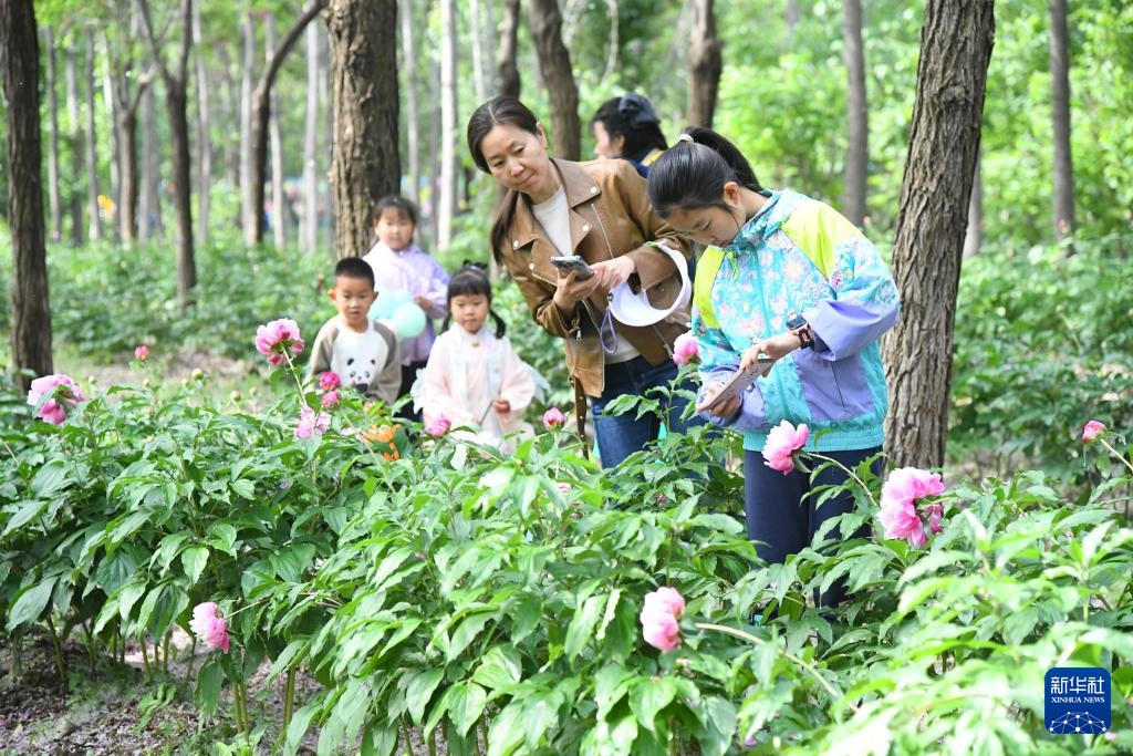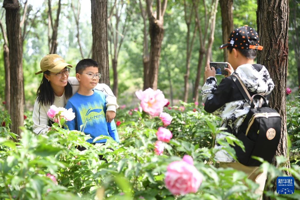 近日,北京市平谷区东高村镇前台头村芍药花种植基地内的芍药花陆续开放,吸引游人前来赏花拍照。据了解,近年来前台头村积极探索“林下经济”发展模式,依托平原造林地块,规模种植芍药花,助力乡村振兴。据介绍,2025年前台头村栽植100余种优质芍药共计100000余株。