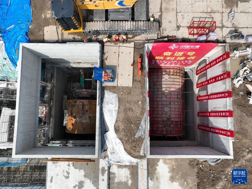 这是北京轨道交通22号线(平谷线)潮白大街站——高楼站左线盾构机掘进终点(5月10日摄,无人机照片)。