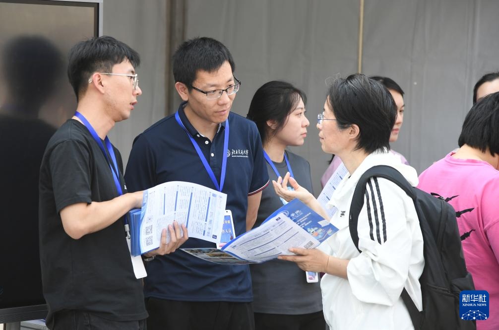 5月10日,工作人员(前中)在北京交通大学2025年校园开放日暨高招咨询会现场答疑。