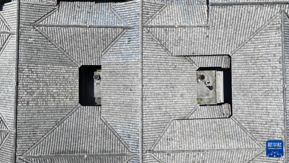 5月11日,游客在张谷英村游览(无人机照片)。