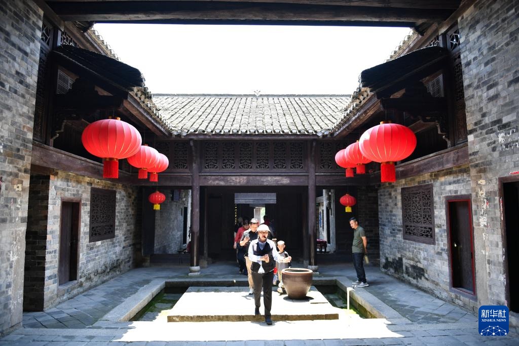 5月11日,游客在张谷英村游览。