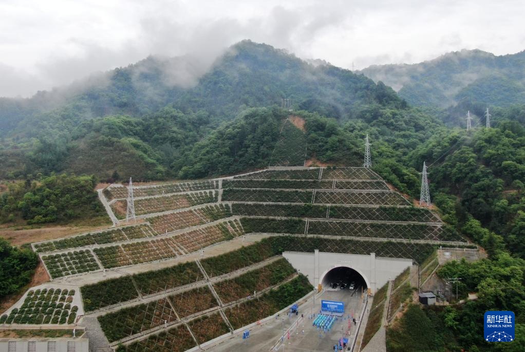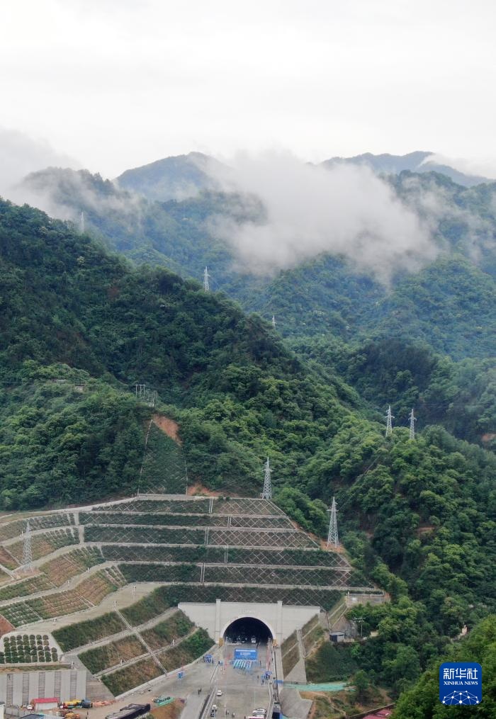 5月13日拍摄的西康高铁秦岭九天山隧道(无人机照片)。