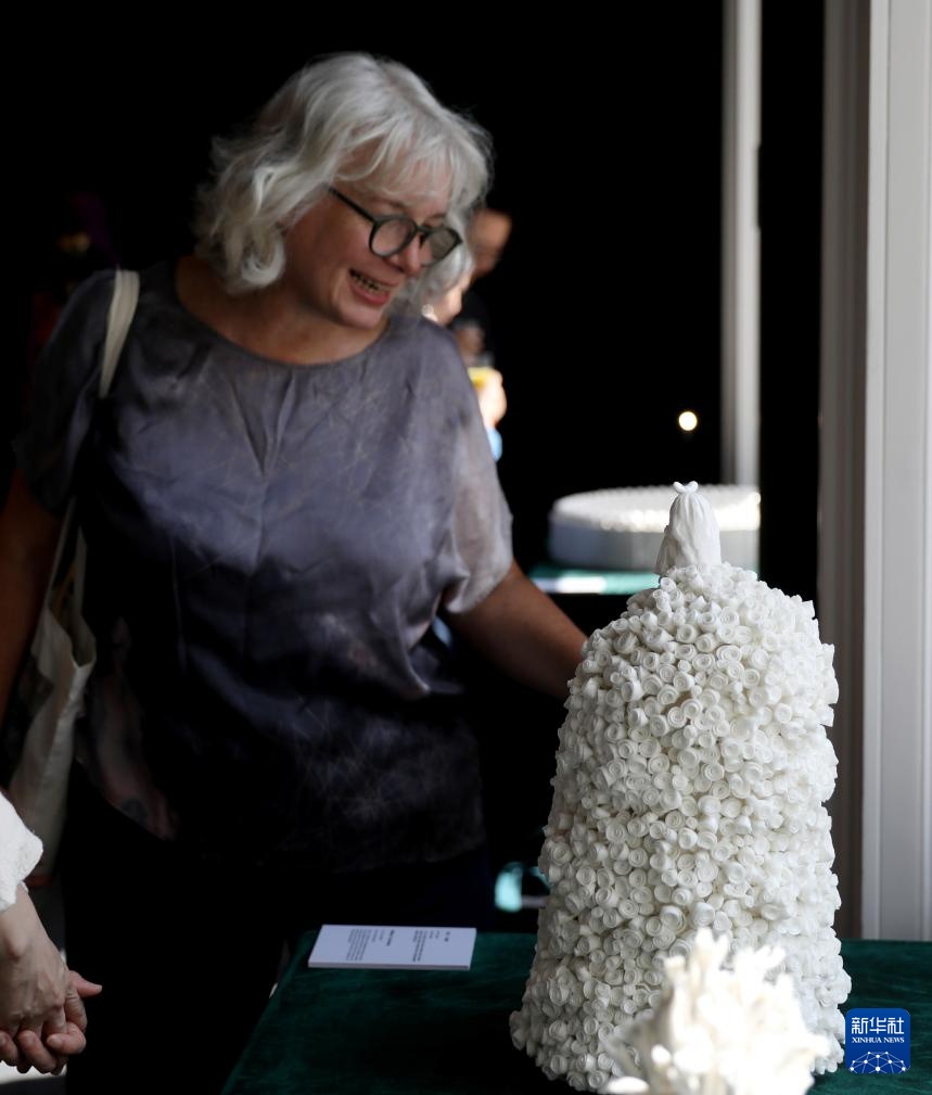 5月12日,在英国伦敦,一名女子在伦敦工艺周中国国家馆开幕活动上参观。