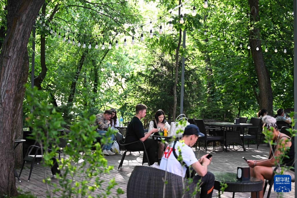 5月13日,人们在哈萨克斯坦阿拉木图的科克托别山休闲。