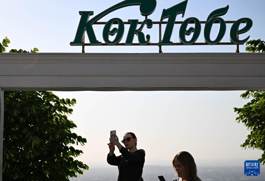 5月13日,人们在哈萨克斯坦阿拉木图的科克托别山游览。