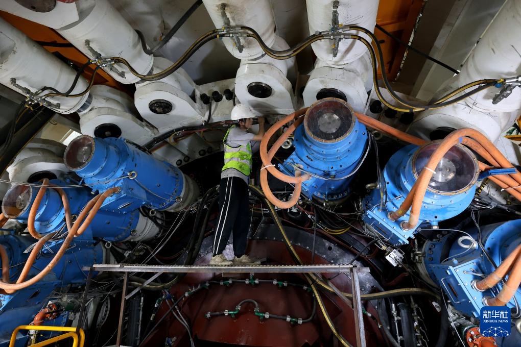 5月14日,施工人员在检查“龙岗3号”盾构机主驱动电机。