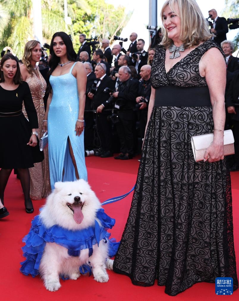5月14日,在法国戛纳举行的第78届戛纳国际电影节上,一只小狗“盛装”出席《碟中谍8:最终清算》首映礼。