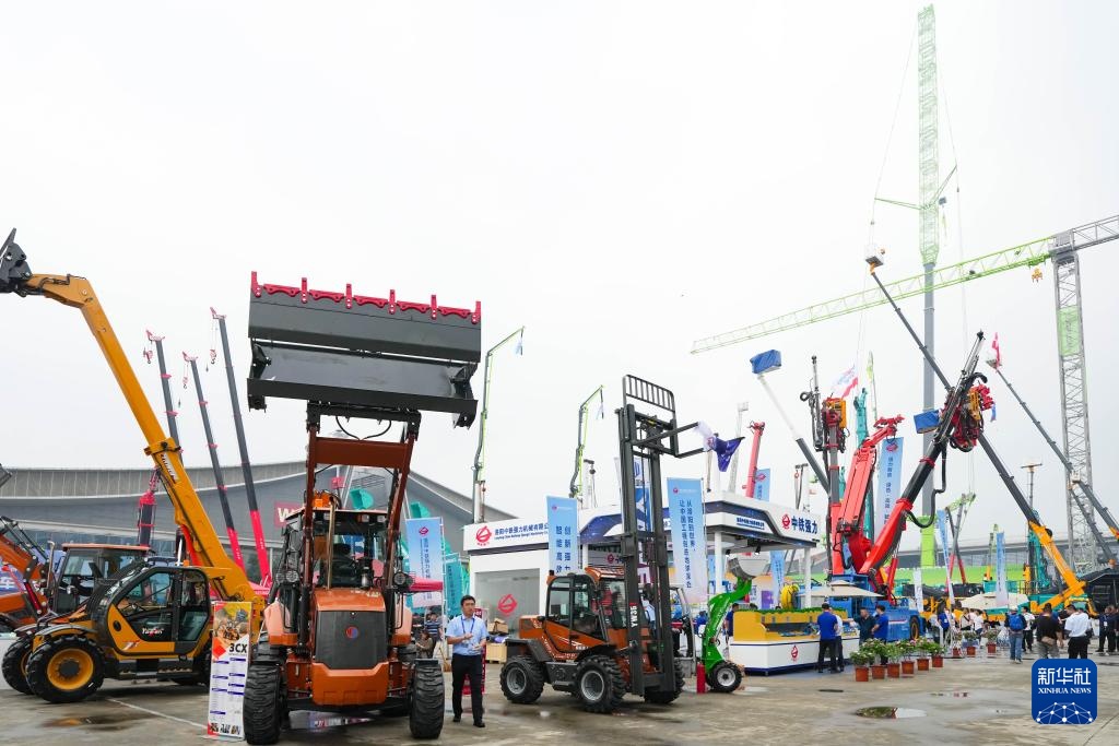 这是5月15日拍摄的第四届长沙国际工程机械展览会现场。