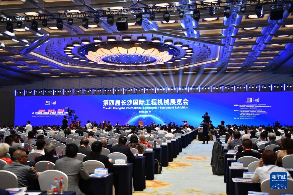 这是5月15日拍摄的第四届长沙国际工程机械展览会开幕式现场。