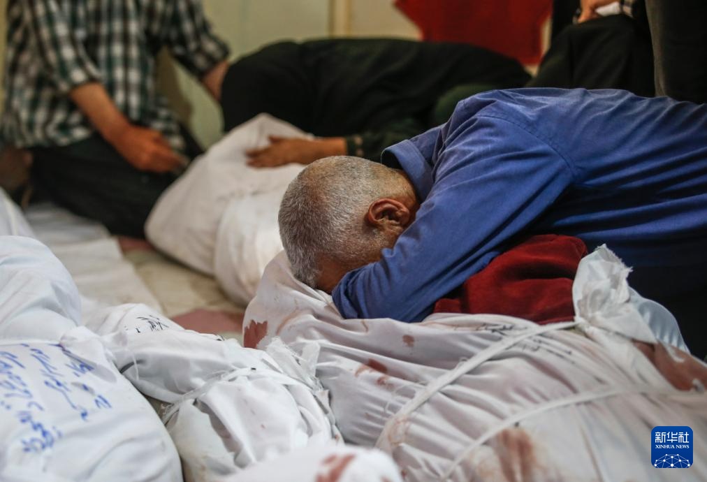 5月14日,在加沙地带北部杰巴利耶地区,巴勒斯坦人悼念遇难者。
