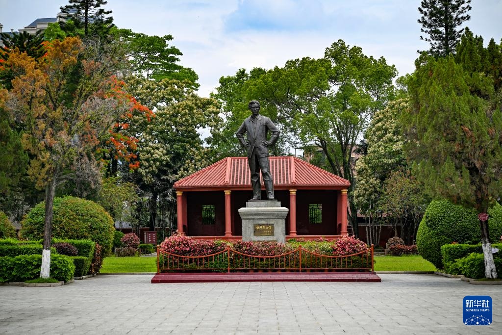这是位于广东汕尾红宫红场旧址内红场旁的彭湃雕像(5月14日摄)。