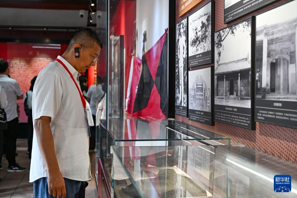 5月14日,游客在广东汕尾参观由海丰各界人民团体联合会成立旧址改造的善美书院。