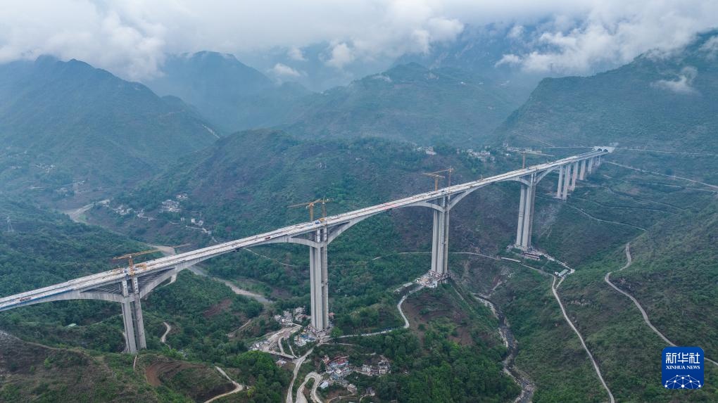 这是顺利实现合龙的纳晴高速六枝特大桥(5月15日摄,无人机照片)。