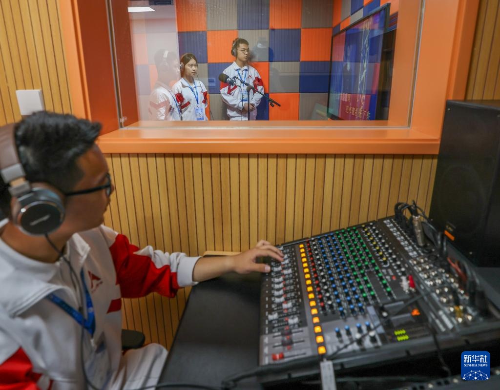 5月16日,在人大附中分校录音棚,学生在练习歌曲。