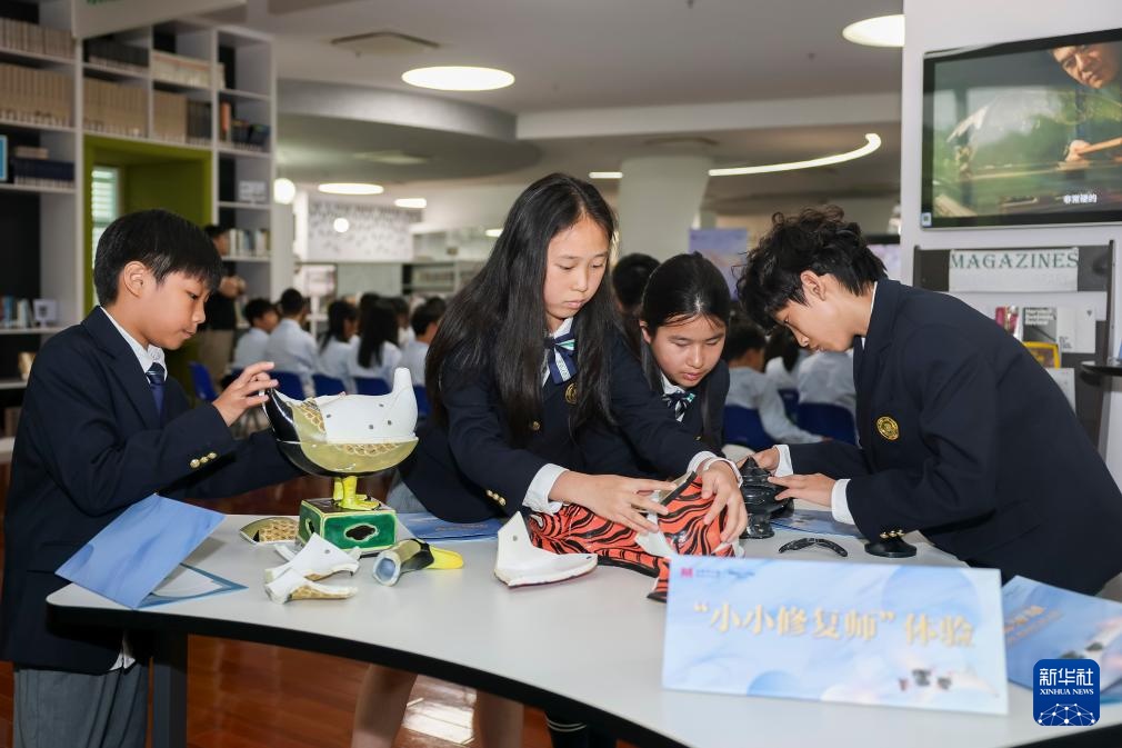 5月16日,在上海宋庆龄学校,学生体验模拟文物修复。