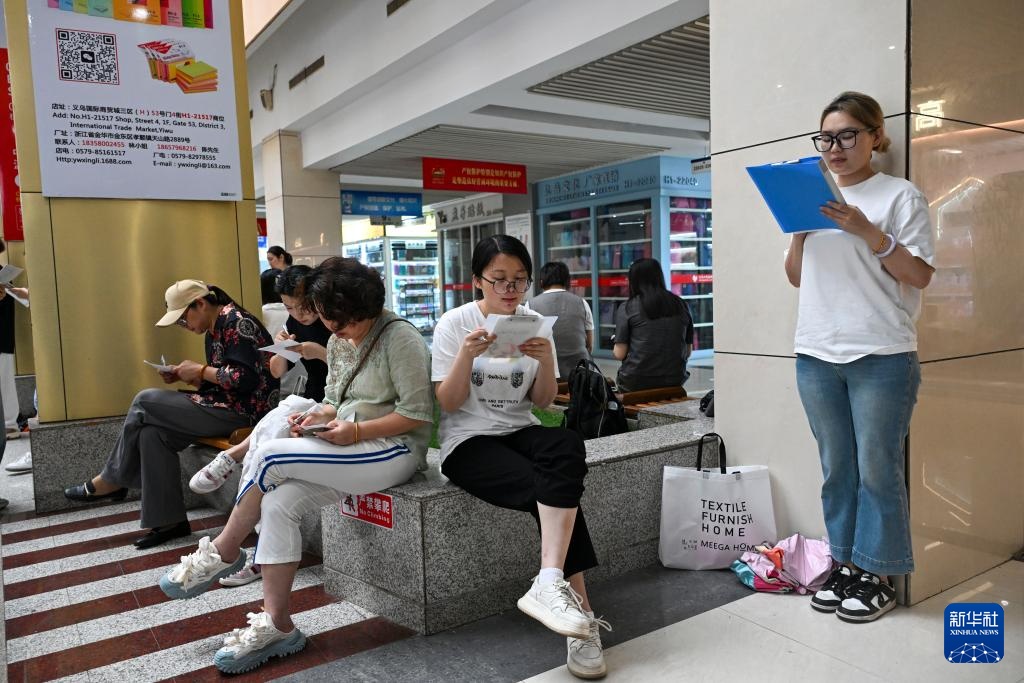 人们在义乌国际商贸城购物洽谈(5月16日摄)。