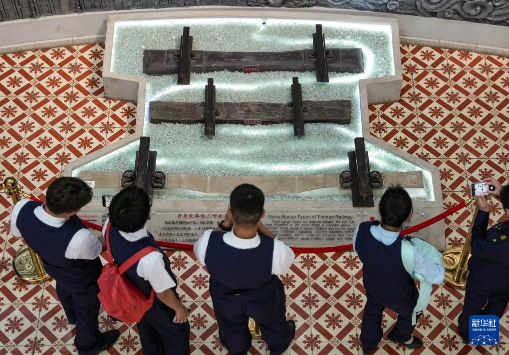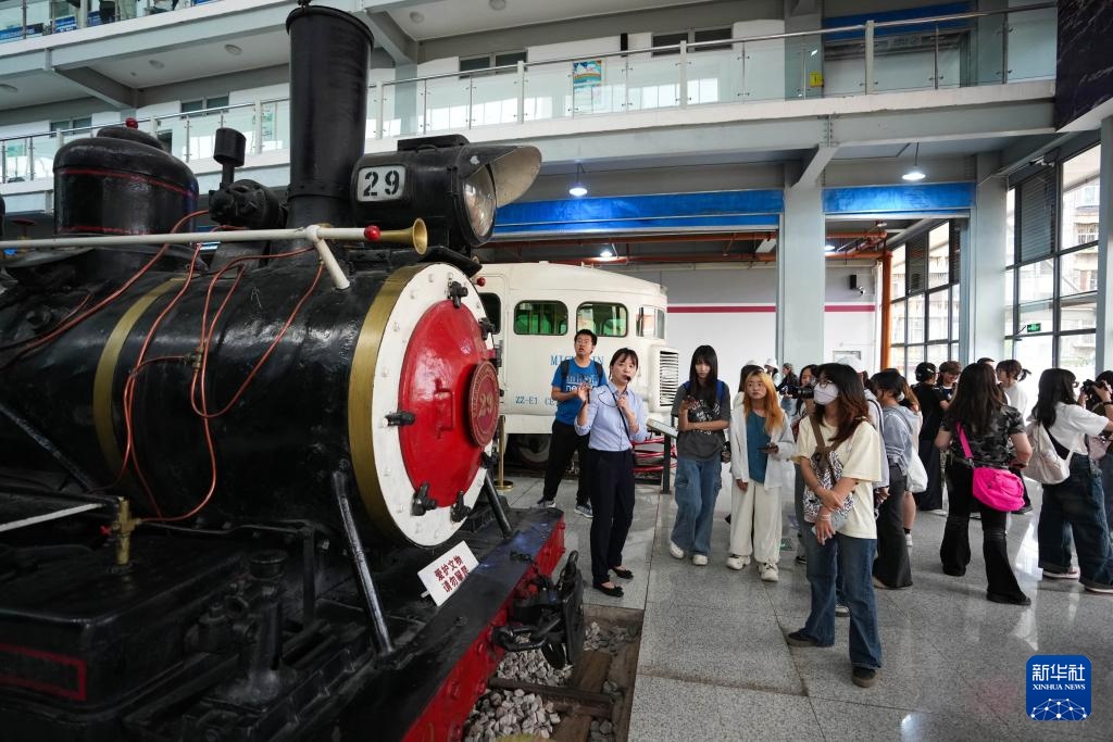 参观者在云南铁路博物馆参观(5月14日摄)。