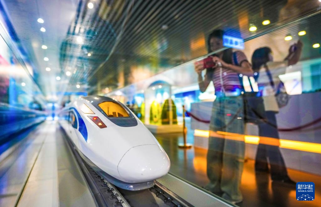 5月16日,一名参观者在云南铁路博物馆拍摄复兴号动车组模型。