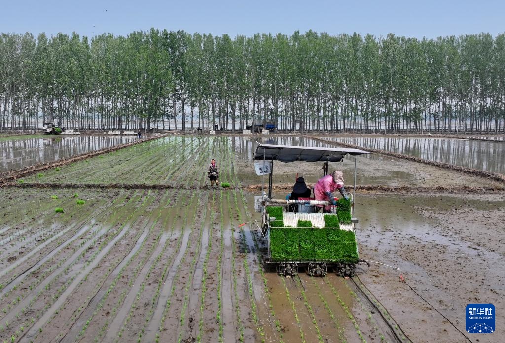 近日,素有“鱼米之乡”美誉的河北省唐山市曹妃甸区的农民开始插秧,田间地头呈现出一派繁忙的景象。据介绍,曹妃甸区是河北省重要的商品粮基地,今年预计种植水稻32万亩。