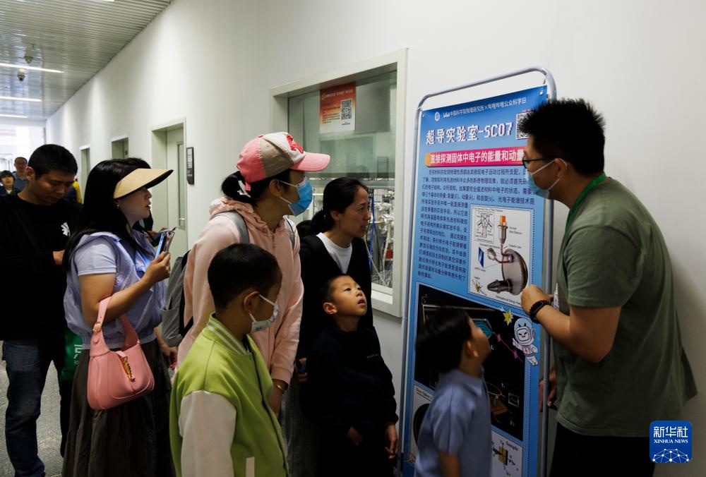 5月17日,在中国科学院物理研究所,参观者在听取志愿者介绍超导实验室。