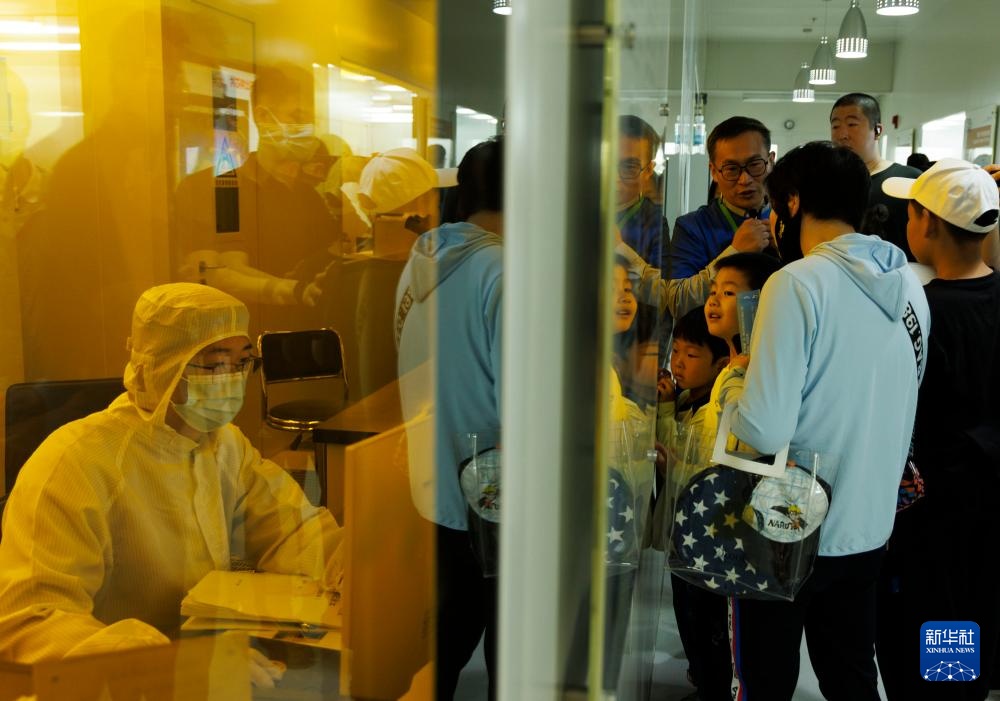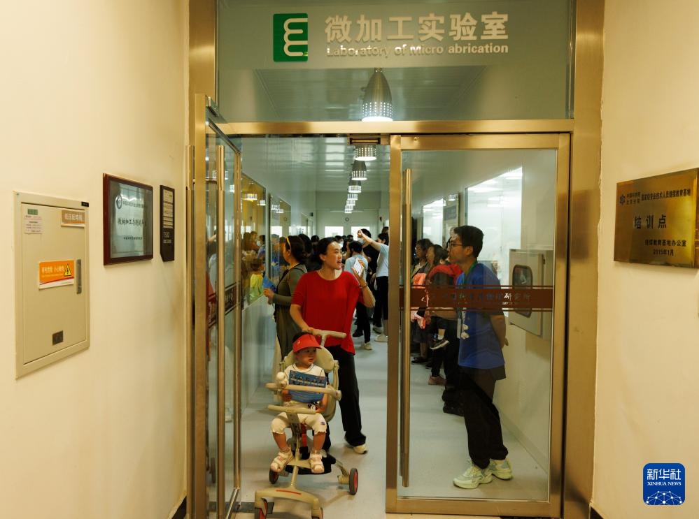 5月17日,在中国科学院物理研究所,参观者在听取志愿者介绍微加工实验室。