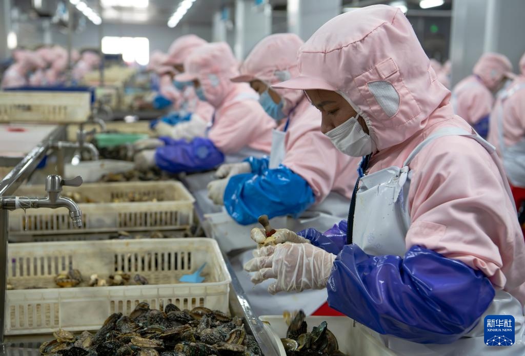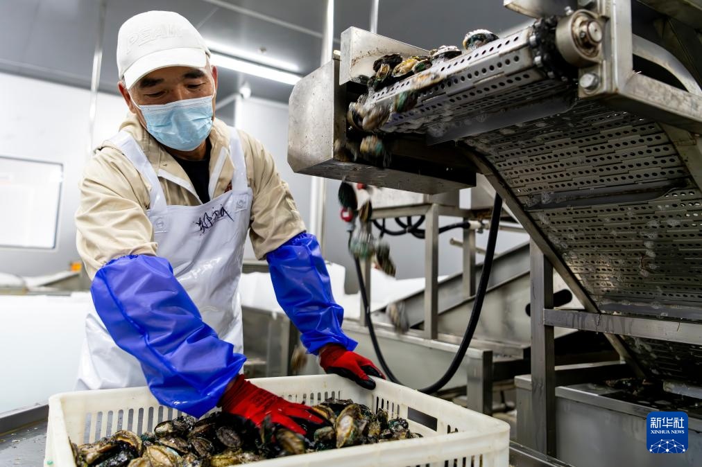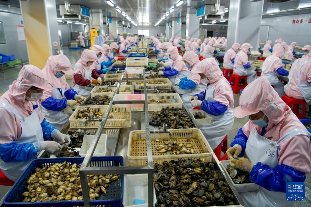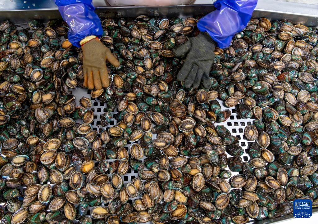 在位于莆田市涵江区的福建省新膳海洋食品有限公司生产车间里,工人们在处理加工鲍鱼。该公司年加工鲍鱼超过3亿只(5月16日摄)。