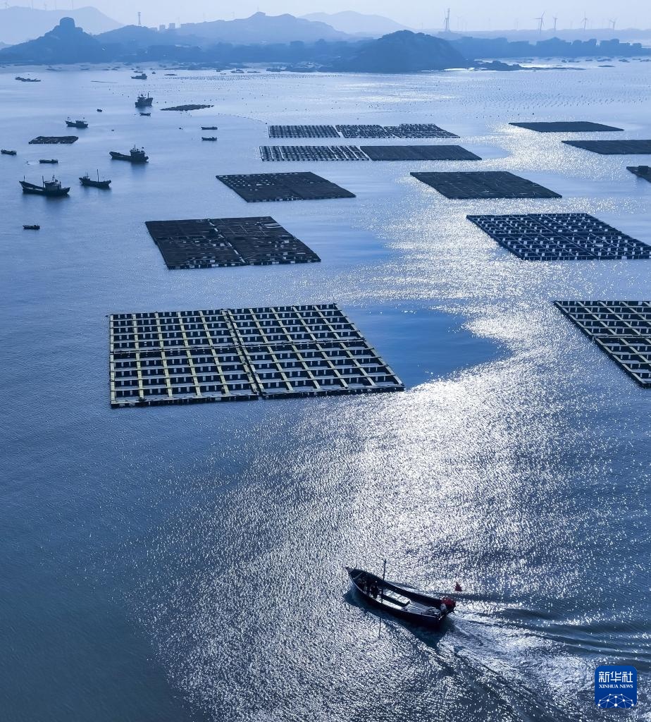 这是莆田市南日岛海域海上田园综合体全景。该综合体有序科学发展近海生态、立体循环养殖(无人机照片,2月27日摄)。
