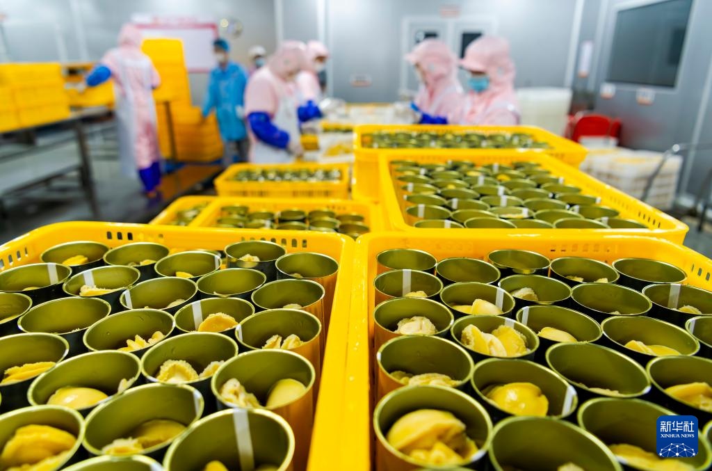 在位于莆田市涵江区的福建省新膳海洋食品有限公司生产车间里,工人们在生产准备出口的速冻鲍鱼罐头(5月16日摄)。
