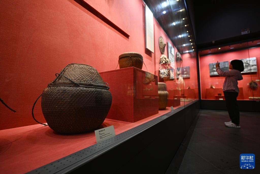 5月16日在位于海南五指山的海南省民族博物馆拍摄的黎族藤衣箩。
