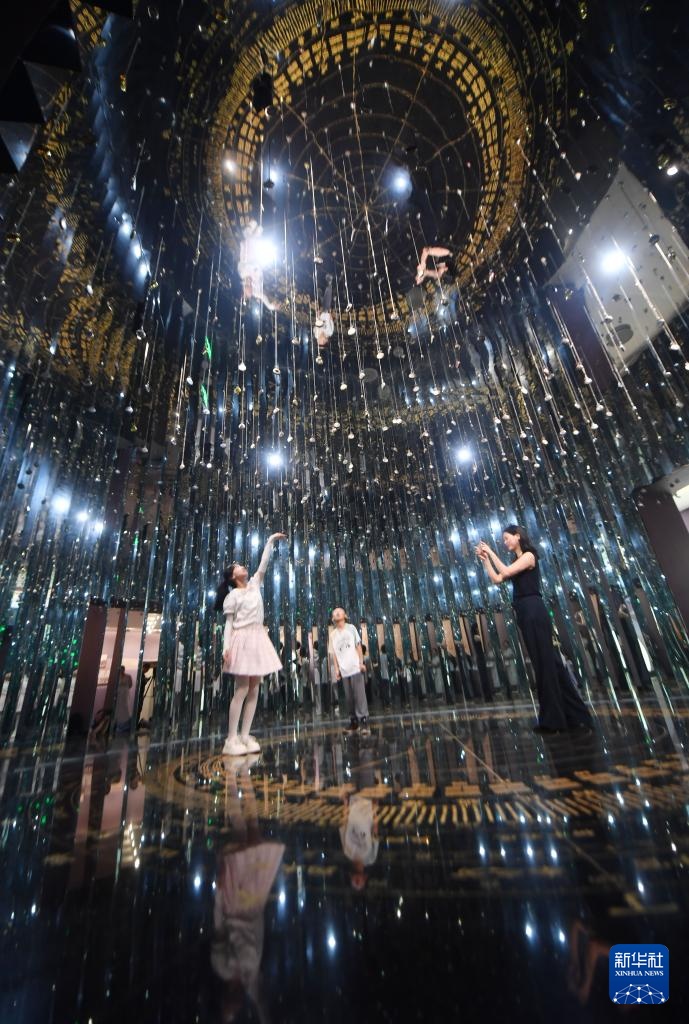 5月17日,游客在船山钟表博物馆内参观“水运浑天仪”模型。